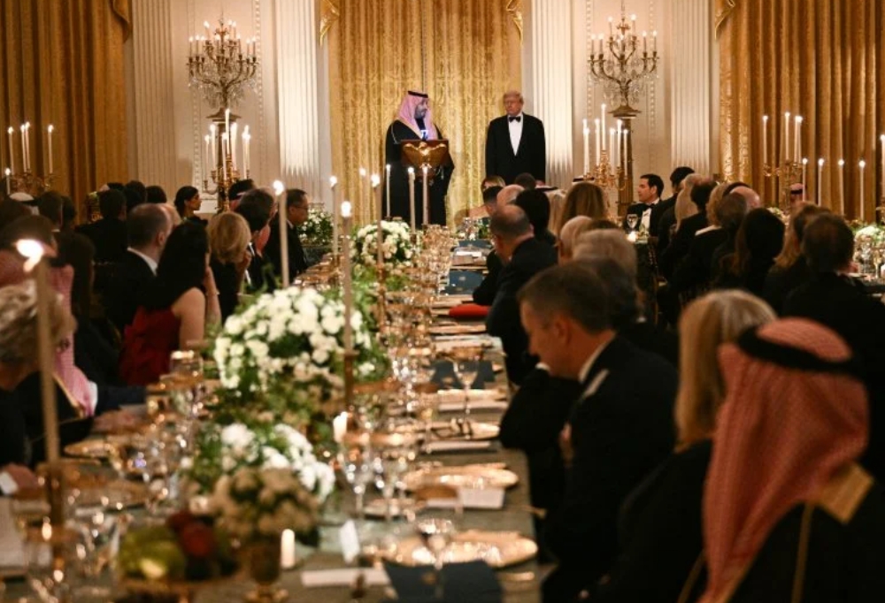 كان نجم كرة القدم البرتغالي كريستيانو رونالدو من بين ضيوف العشاء الفاخر الذي أقامه الرئيس الأمريكي دونالد ترامب، أمس الثلاثاء في البيت الأبيض، لولي العهد السعودي الأمير محمد بن سلمان.وجلس اللاعب البالغ 40 عاما، الذي ينتهي عقده في الدوري السعودي نهاية الصيف المقبل، قرب المقعد المخصّص لترامب في رأس الطاولة، قبل ثوانٍ من دخول الرئيس الأمريكي والأمير بن سلمان.