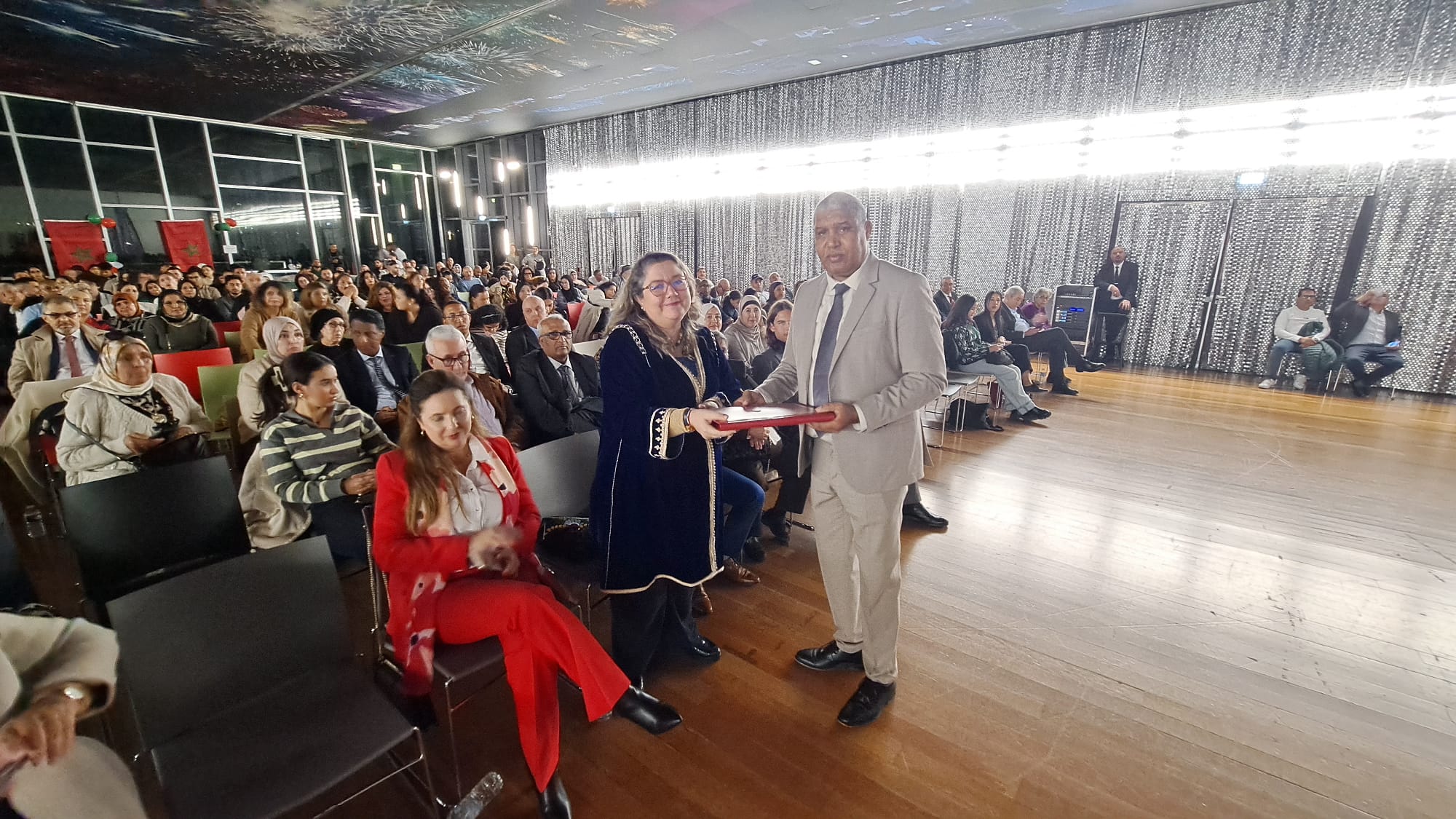 وتميز الحفل بتنظيم ندوة فكرية رفيعة المستوى بعنوان “الدبلوماسية الموازية ودورها في تدعيم مخطط الحكم الذاتي في الصحراء المغربية”، بمشاركة شخصيات أكاديمية وسياسية وعسكرية وثقافية، أكدت جميعها على مركزية هذا الحدث الوطني في تعزيز الوحدة الوطنية وتقوية الروابط بين الوطن وأبنائه بالخارج.