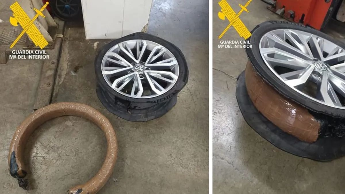 عند تعميق التفتيش، كانت المفاجأة الكبرى كامنة داخل إطارات السيارة الأربعة. فقد عمد المهربون إلى استخدام هذه الطريقة المعقدة والشائعة لإخفاء المخدرات، ظناً منهم أنها ستفلت من أعين الرقابة.