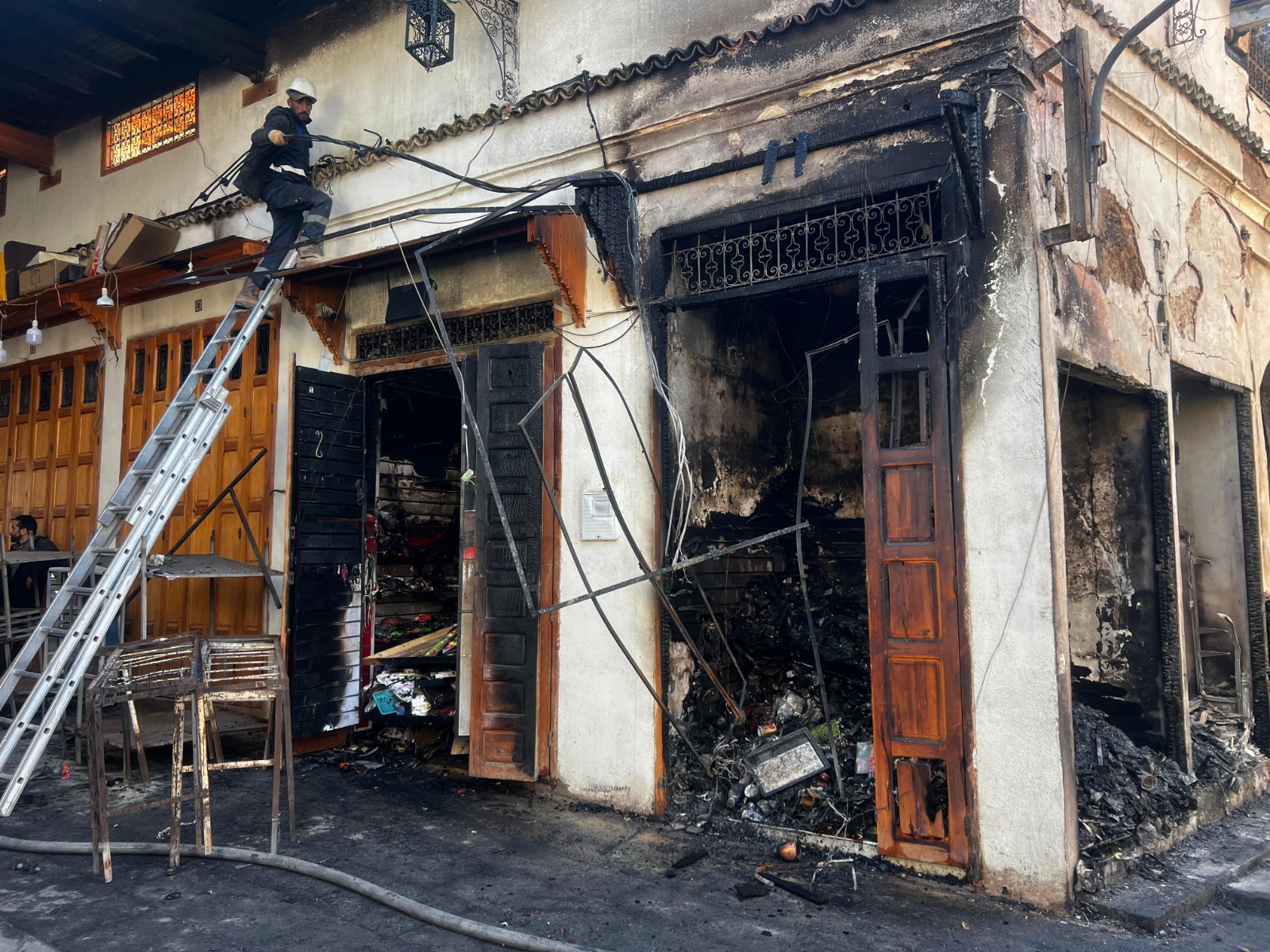 *المحور الثاني: أشغال تأهيل المحلات التجارية المتضررة من تداعيات الحريق والتي تهم عمليات إصلاح المحلات التجارية المتضررة، وإصلاح الواجهات، تسقيف الأزقة، تكسية أرضية الأزقة، الشبكة الكهربائية ذات الجهد المنخفض والإنارة العمومية، الماء والتطهير، التجهيزات المتعلقة بالسلامة والوقاية من الحرائق، رصد له استثمار مالي يقدر ب 8 مليون درهم، وسيتم تنفيد وإنجاز أشغال هذا المشروع خلال مدة تتراوح مابين 10 و 12 أشهر من طرف مؤسسة العمران فاس- مكناس والشركة الجهوية متعددة الخدمات كل حسب اختصاصاته.