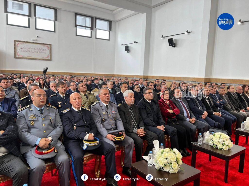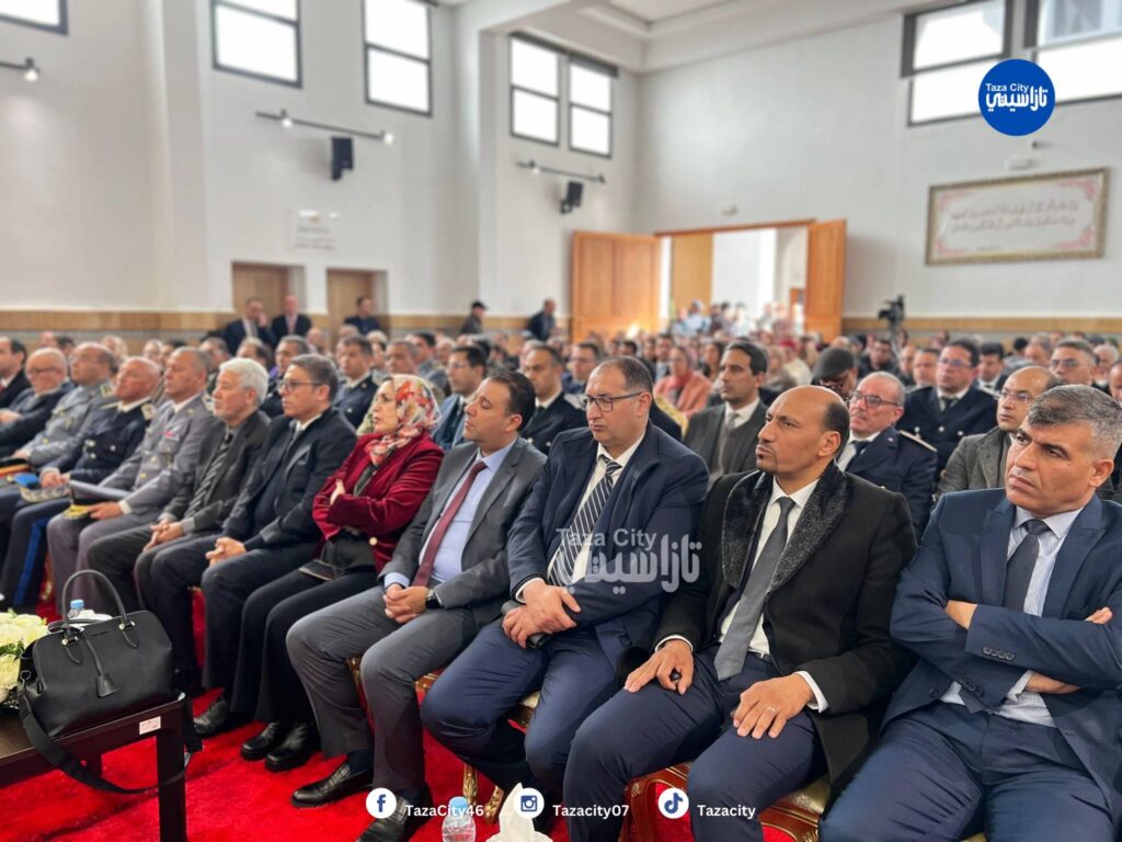 وقد حضر هذا الحفل عامل إقليم تازة، رشيد بنشيخي، إلى جانب ممثل المجلس الأعلى للسلطة القضائية، وممثل رئاسة النيابة العامة، وممثل وزارة العدل، فضلاً عن عدد من المسؤولين القضائيين والأمنيين والعسكريين والمنتخبين، وممثلي السلطات المحلية وفعاليات من المجتمع المدني.