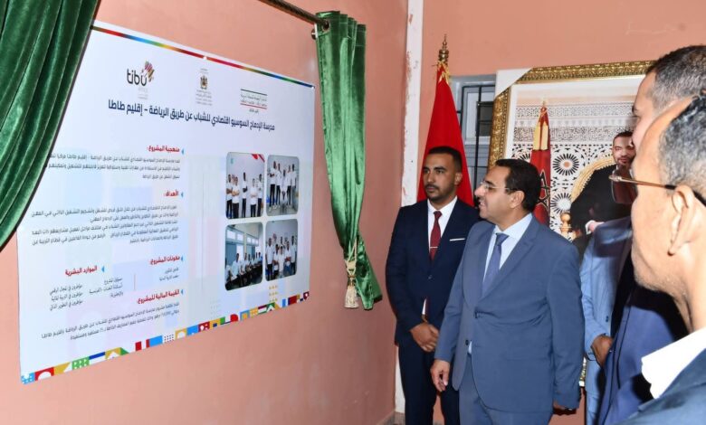انطلقت بإقليم طاطا، صباح اليوم يوم الاثنين 27 أبريل 2026، أشغال مشروع “مدرسة الإدماج السوسيو-اقتصادي للشباب عبر الرياضة”، في مبادرة ترأسها السيد محمد باري، عامل الإقليم، بحضور رئيس الجماعة الترابية لطاطا، والمدير الإقليمي لوزارة التربية الوطنية والتعليم الأولي والرياضة، ورئيس جمعية تيبو أفريقيا.ويأتي إطلاق هذا المشروع في إطار جهود تروم تعزيز إدماج الشباب اقتصادياً واجتماعياً، من خلال اعتماد الرياضة كمدخل أساسي لتطوير المهارات وفتح آفاق مهنية جديدة أمام المستفيدين، لاسيما في مجالات المهن الرياضية والصناعات المرتبطة بها.