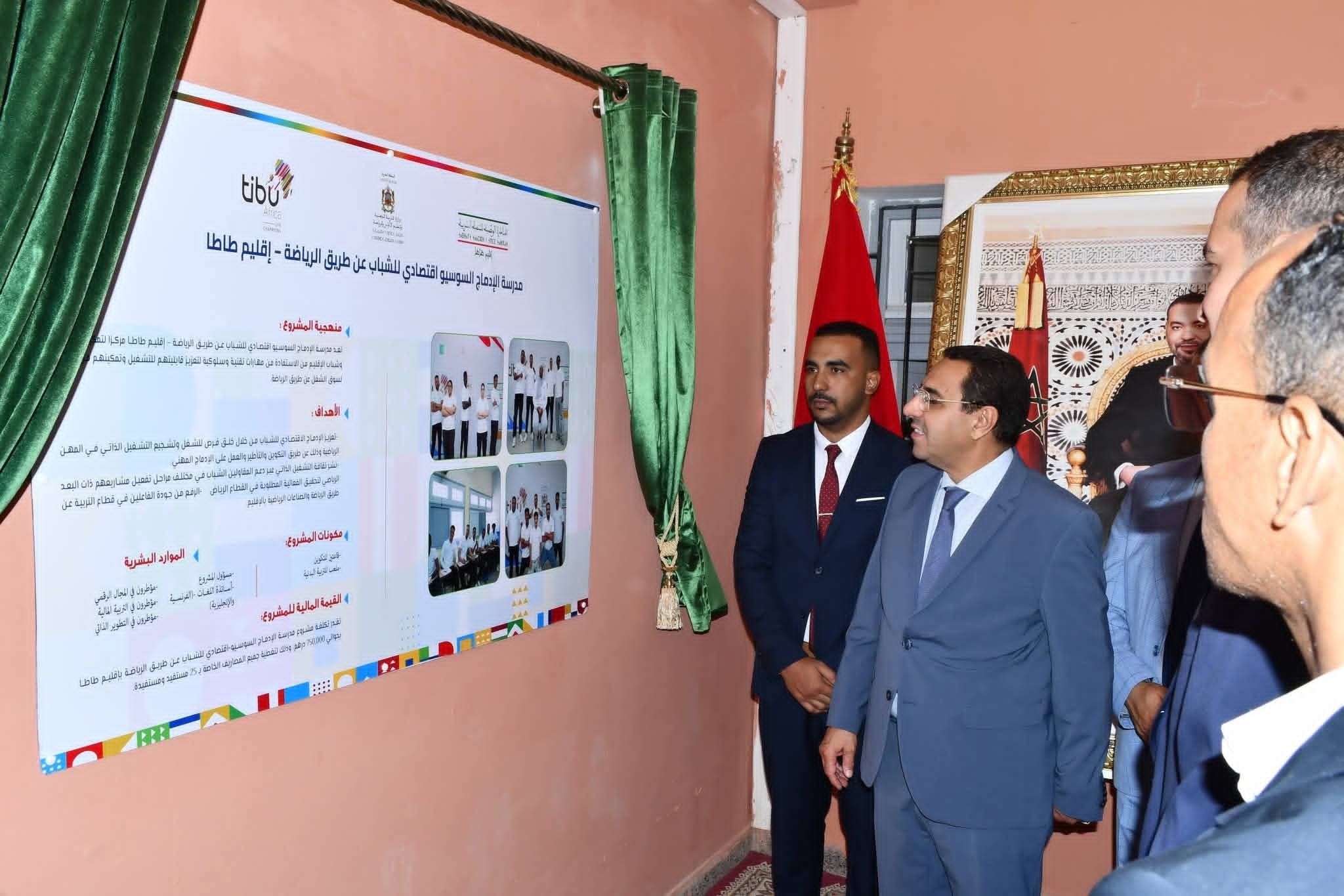 انطلقت بإقليم طاطا، صباح اليوم يوم الاثنين 27 أبريل 2026، أشغال مشروع “مدرسة الإدماج السوسيو-اقتصادي للشباب عبر الرياضة”، في مبادرة ترأسها السيد محمد باري، عامل الإقليم، بحضور رئيس الجماعة الترابية لطاطا، والمدير الإقليمي لوزارة التربية الوطنية والتعليم الأولي والرياضة، ورئيس جمعية تيبو أفريقيا.ويأتي إطلاق هذا المشروع في إطار جهود تروم تعزيز إدماج الشباب اقتصادياً واجتماعياً، من خلال اعتماد الرياضة كمدخل أساسي لتطوير المهارات وفتح آفاق مهنية جديدة أمام المستفيدين، لاسيما في مجالات المهن الرياضية والصناعات المرتبطة بها.