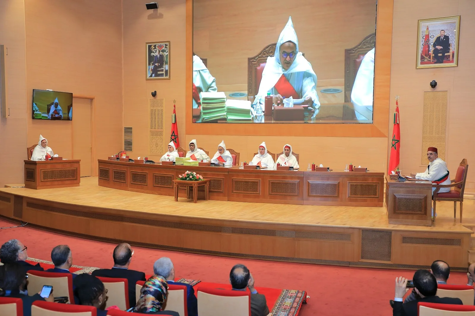 حضر مراسم أداء اليمين السيد الرئيس الأول لمحكمة النقض الرئيس المنتدب للمجلس الأعلى للسلطة القضائية، والسيد الوكيل العام للملك لدى محكمة النقض رئيس النيابة العامة وأعضاء المجلس الأعلى للسلطة القضائية وكبار المسؤولين بإدارة المجلس والمدير العام للمعهد العالي للقضاء وبعض أطر هيئة التكوين بذات المعهد.